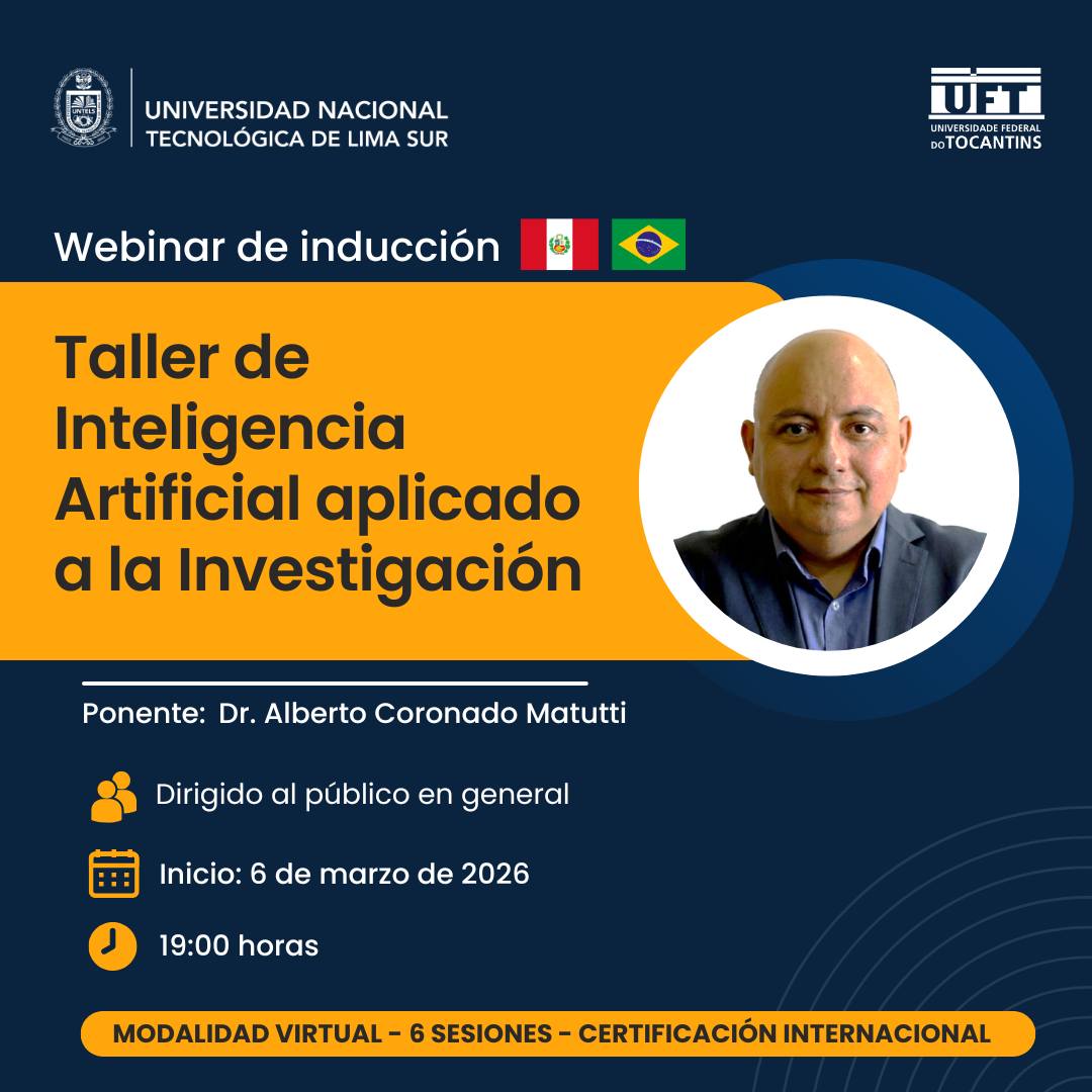 Este webinar se desarrolla en el marco de la colaboración académica entre la Universidad Nacional Tecnológica de Lima Sur (UNTELS) y la Universidad Federal de Tocantins – Brasil (UFT), y tiene como objetivo brindar una inducción a los contenidos que se abordarán en el taller completo que se realizará próximamente.
